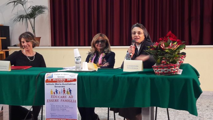 Essere famiglia nella società di oggi, con le sue incessanti richieste di consumo e omologazione, è ancora possibile nel suo pieno significato? Sì se si tiene presente che la famiglia è costruita sui sentimenti e sui valori, altrimenti è solo un’accozzaglia di persone. Spiazzante e diretta, questa la risposta in sintesi di Tiziana Iaquinta, scrittrice e pedagogista, ricercatrice Umg, a un interrogativo che ha fatto da filo conduttore alla conferenza Educare a essere famiglia organizzata venerdì sera dall’Unione exallieve Fma all’Istituto Maria Ausiliatrice di Soverato (Cz). Dopo i saluti di Ermelinda Lifrieri, presidente dell’Unione ex allieve, e suor Ausilia De Siena, direttrice dell’istituto, Iaquinta ha condotto con piglio vivace, autentico e originale la sua riflessione sulla pedagogia familiare. “L’alto livello di aspettative sui figli che abbiamo oggi, tra prestazioni scolastiche, sportive, artistiche e sociali imposte da un modello al quale finiamo per adeguarci, uccide la genitorialità. Ma i bambini hanno talenti diversi, così come i genitori hanno alcune qualità e non altre. La ricetta dovrebbe quindi essere più semplice: fare il ministrone con gli ingredienti che abbiamo!”, è la riflessione della studiosa, che durante il suo intervento ha richiamato spesso l’enciclica Amoris laetitia di papa Bergoglio.