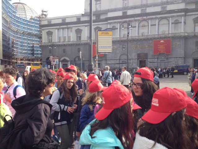 Tornando alla Piazza Incantata, sono quaranta i ragazzini della scuola media Ugo Foscolo, più 17 elementi del coro Il Mosaico. che partecipano alla grande serata. Una nutrita presenza, quella della scuola di Soverato, alla quale si aggiunge quella del coro di Davoli con l’associazione musicale “Monteverdi”. Le prove generali del coro sono iniziate già stamattinaalle ore 11, e il concerto sta per iniziare alle ore 17. La diretta streaming dell’evento sarà disponibile sul sito www.istruzione.it. Sono previsti poi collegamenti in diretta su RaiNews, Rai Uno, Radio3, Isoradio, mentre un documentario su lapiazzaincantata andrà in onda su Rai5 sabato 16 aprile alle ore 20:45. E dalle prime foto da via del Plebiscito che vi proponiamo si vede già tutto l’entusiasmo e la gioia di ragazzi e insegnanti per far parte di questo evento storico, definito un massive flash mob – il coro più grande del mondo, che dimostra come una buona scuola, nel Paese culla dell’arte e della cultura, se e quando si vuole è davvero possibile.