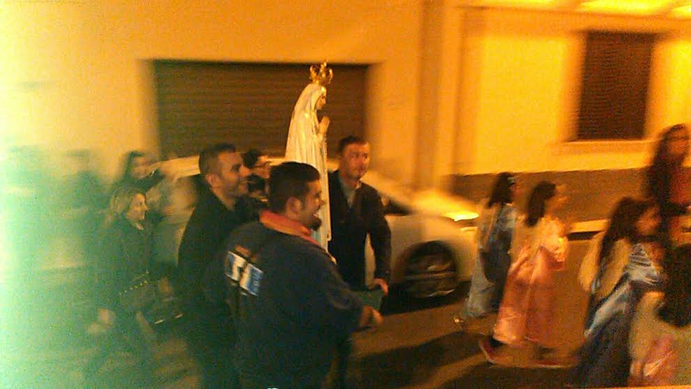 Una folla emozionata ha accolto ieri sera in Piazza Roma la Madonna Pellegrina di Fatima, sventolando fazzoletti bianchi e intonando alcuni canti. La statua della Madonna, portata da alcuni membri dell’Unitalsi – alla quale si deve l’organizzazione della bellissima iniziativa – e accompagnata da bambini vestiti da angioletti si è quindi diretta versa la Chiesa Maria S.S. Addolorata. Al suo arrivo don Giorgio Pascolo ha ringraziato tutti e ha invitato la popolazione alla veglia che si sarebbe svolta dopo la proiezione del video sulla storia della Madonna di Fatima e quella dei tre pastorelli, accompagnata da varie testimonianze. Nel video momenti storici e personaggi storici come le due guerre mondiali, Papa Giovanni Paolo II° e l’attacco alle Twin Towers dell’11 settembre 2001.
