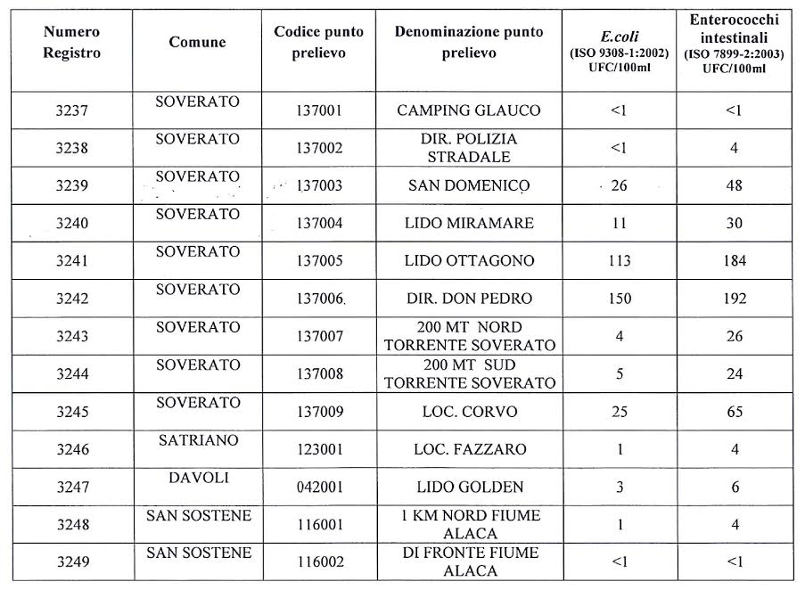 Soveratese, balneazione. Arpacal conferma ok anche da nuove analisi suppletive.